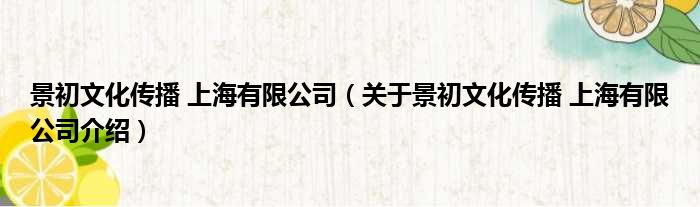 大家好,小钱来为大家解答以上的问题。景初文化传播 上海有限公司,关于景初文化传播 上海有限公司介绍这个很多人还不知道,现在让我们一起来看看吧!
