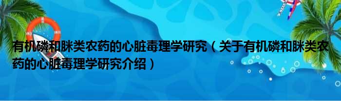 关于有机磷和脒类农药的心脏毒理学研究到此分享完毕,希望能帮助到您。