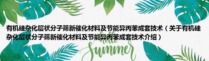 关于有机硅杂化层状分子筛新催化材料及节能异丙苯成套技术到此分享完毕,希望能帮助到您。