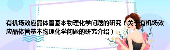 关于有机场效应晶体管基本物理化学问题的研究到此分享完毕,希望能帮助到您。