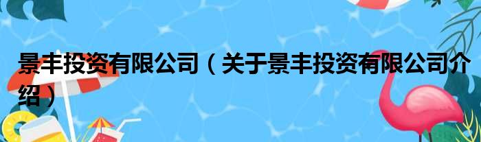 关于景丰投资有限公司到此分享完毕,希望能帮助到您。