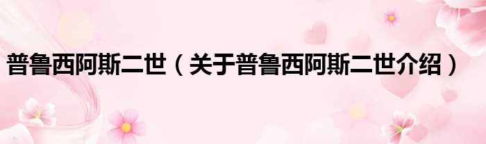 大家好,小钱来为大家解答以上的问题。普鲁西阿斯二世,关于普鲁西阿斯二世介绍这个很多人还不知道,现在让我们一起来看看吧!