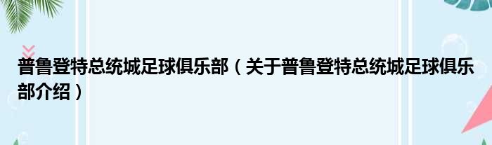 关于普鲁登特总统城足球俱乐部到此分享完毕,希望能帮助到您。