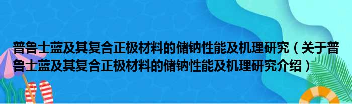 关于普鲁士蓝及其复合正极材料的储钠性能及机理研究到此分享完毕,希望能帮助到您。