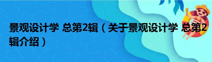 关于景观设计学 总第2辑到此分享完毕,希望能帮助到您。