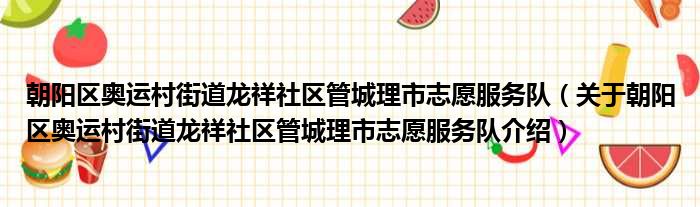 关于朝阳区奥运村街道龙祥社区管城理市志愿服务队到此分享完毕,希望能帮助到您。