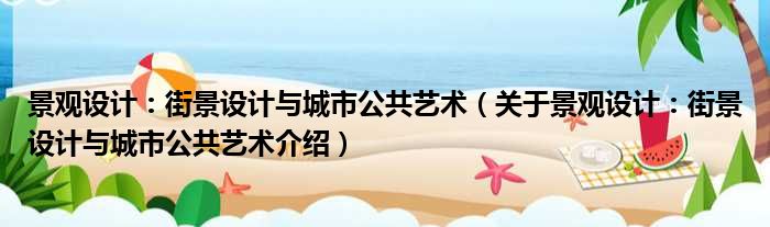 免责声明:本文由用户上传,如有侵权请联系删除!大家好,小钱来为大家解答以上的问题。景观设计:街景设计与城市公共艺术,关于景观设计:街景设计与城市公共艺术介绍这个很多人还不知道,现在让我们一起来看看吧!