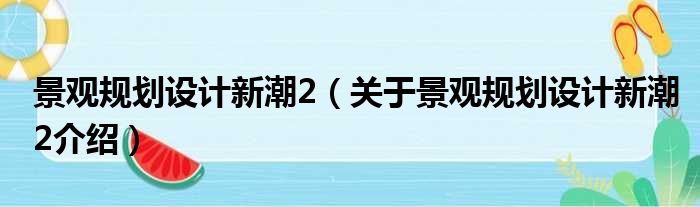 大家好,小钱来为大家解答以上的问题。景观规划设计新潮2,关于景观规划设计新潮2介绍这个很多人还不知道,现在让我们一起来看看吧!
