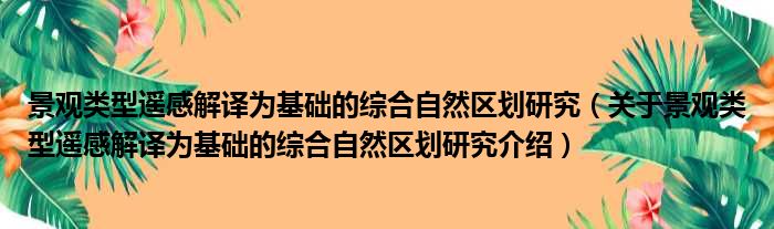 关于景观类型遥感解译为基础的综合自然区划研究到此分享完毕,希望能帮助到您。