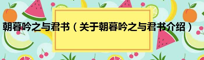 大家好,小钱来为大家解答以上的问题。朝暮吟之与君书,关于朝暮吟之与君书介绍这个很多人还不知道,现在让我们一起来看看吧!