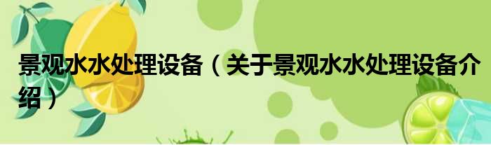 关于景观水水处理设备到此分享完毕,希望能帮助到您。