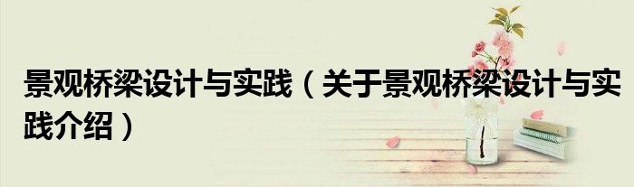 大家好,小钱来为大家解答以上的问题。景观桥梁设计与实践,关于景观桥梁设计与实践介绍这个很多人还不知道,现在让我们一起来看看吧!