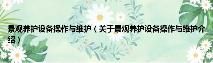 关于景观养护设备操作与维护到此分享完毕,希望能帮助到您。