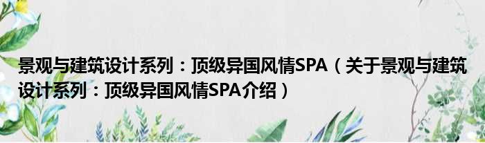 大家好,小钱来为大家解答以上的问题。景观与建筑设计系列:顶级异国风情SPA,关于景观与建筑设计系列:顶级异国风情SPA介绍这个很多人还不知道,现在让我们一起来看看吧!