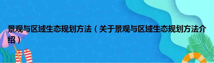 关于景观与区域生态规划方法到此分享完毕,希望能帮助到您。