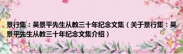 1、 《景行集:吴景平先生从教三十年纪念文集》是2021年复旦大学出版社出版的图书。