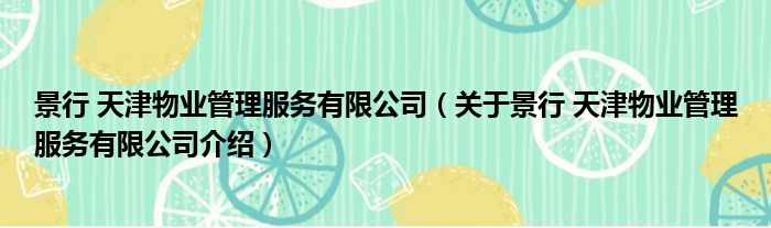 关于景行 天津物业管理服务有限公司到此分享完毕,希望能帮助到您。