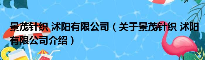 关于景茂针织 沭阳有限公司到此分享完毕,希望能帮助到您。