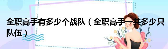关于全职高手有多少个战队,全职高手一共多少只队伍的介绍到此结束,希望对大家有所帮助。