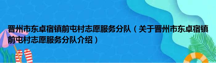 1、 晋州市东卓宿镇前屯村志愿服务分队是由晋州市志愿服务支队领导下的志愿团体。