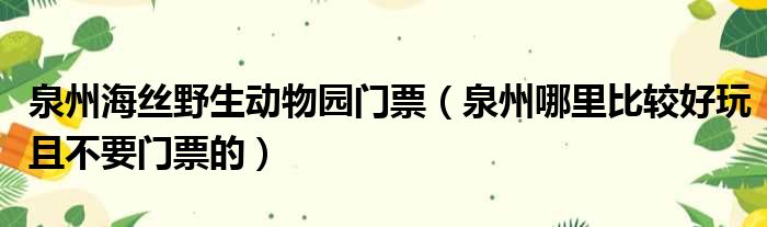 关于泉州海丝野生动物园门票,泉州哪里比较好玩且不要门票的的介绍到此结束,希望对大家有所帮助。
