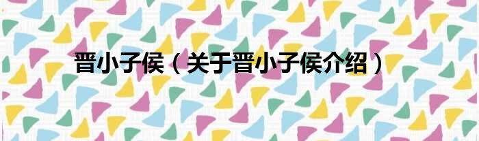 1、 晋小子侯(前708年—前705年在位),即姬小子,是春秋时期诸侯国晋国的国君。