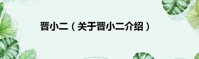 大家好,小钱来为大家解答以上的问题。晋小二,关于晋小二介绍这个很多人还不知道,现在让我们一起来看看吧!