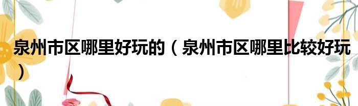 大家好,小纵来为大家解答以上问题。泉州市区哪里好玩的,泉州市区哪里比较好玩这个很多人还不清楚,现在一起跟着小编来瞧瞧吧!