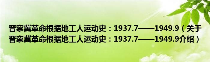 免责声明:本文由用户上传,如有侵权请联系删除!大家好,小钱来为大家解答以上的问题。晋察冀革命根据地工人运动史:1937.7——1949.9,关于晋察冀革命根据地工人运动史:1937.7——1949.9介绍这个很多人还不知道,现在让我们一起来看看吧!