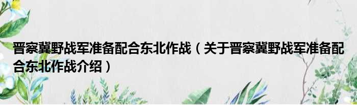 关于晋察冀野战军准备配合东北作战到此分享完毕,希望能帮助到您。