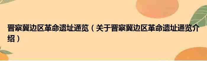 免责声明:本文由用户上传,如有侵权请联系删除!大家好,小钱来为大家解答以上的问题。晋察冀边区革命遗址通览,关于晋察冀边区革命遗址通览介绍这个很多人还不知道,现在让我们一起来看看吧!