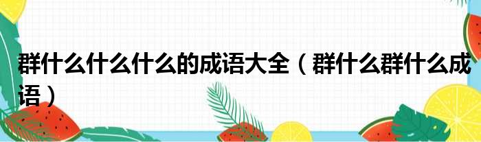 关于群什么什么什么的成语大全,群什么群什么成语的介绍到此结束,希望对大家有所帮助。