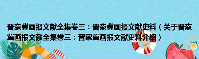 1、 《晋察冀画报文献全集卷三:晋察冀画报文献史料》是2015年中国摄影出版社出版的图书。