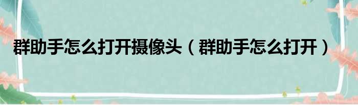 关于群助手怎么打开摄像头,群助手怎么打开的介绍到此结束,希望对大家有所帮助。