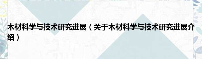 免责声明:本文由用户上传,如有侵权请联系删除!大家好,小钱来为大家解答以上的问题。木材科学与技术研究进展,关于木材科学与技术研究进展介绍这个很多人还不知道,现在让我们一起来看看吧!