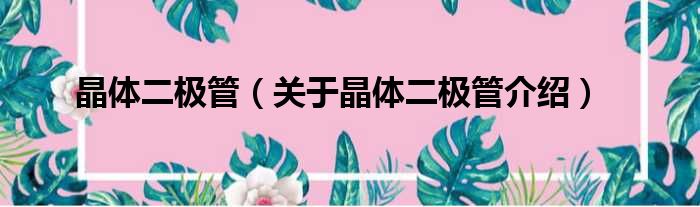 大家好,小钱来为大家解答以上的问题。晶体二极管,关于晶体二极管介绍这个很多人还不知道,现在让我们一起来看看吧!