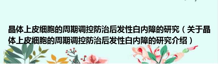 关于晶体上皮细胞的周期调控防治后发性白内障的研究到此分享完毕,希望能帮助到您。