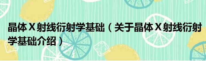 大家好,小钱来为大家解答以上的问题。晶体Ⅹ射线衍射学基础,关于晶体Ⅹ射线衍射学基础介绍这个很多人还不知道,现在让我们一起来看看吧!