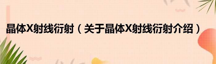 大家好,小钱来为大家解答以上的问题。晶体X射线衍射,关于晶体X射线衍射介绍这个很多人还不知道,现在让我们一起来看看吧!