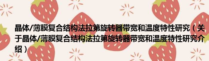 关于晶体/薄膜复合结构法拉第旋转器带宽和温度特性研究到此分享完毕,希望能帮助到您。