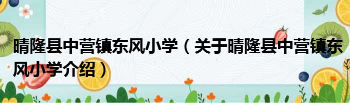 关于晴隆县中营镇东风小学到此分享完毕,希望能帮助到您。