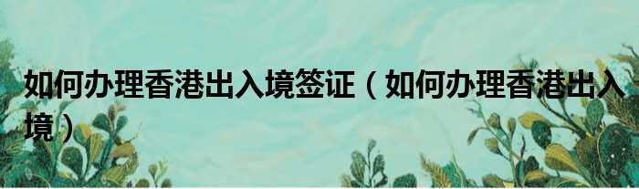 关于如何办理香港出入境签证,如何办理香港出入境的介绍到此结束,希望对大家有所帮助。