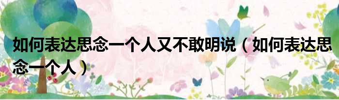 大家好,小纵来为大家解答以上问题。如何表达思念一个人又不敢明说,如何表达思念一个人这个很多人还不清楚,现在一起跟着小编来瞧瞧吧!