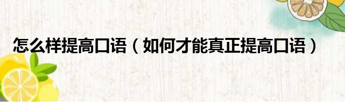 关于怎么样提高口语,如何才能真正提高口语的介绍到此结束,希望对大家有所帮助。