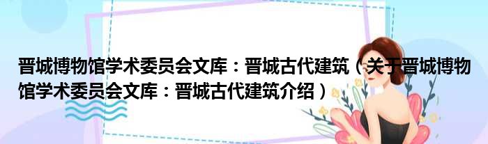 关于晋城博物馆学术委员会文库:晋城古代建筑到此分享完毕,希望能帮助到您。