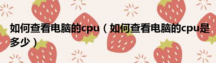 关于如何查看电脑的cpu,如何查看电脑的cpu是多少的介绍到此结束,希望对大家有所帮助。