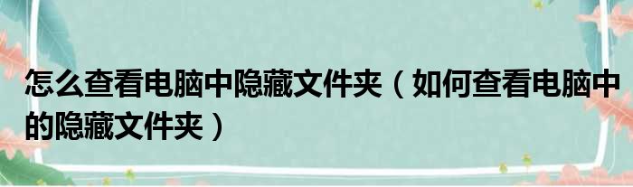 关于怎么查看电脑中隐藏文件夹,如何查看电脑中的隐藏文件夹的介绍到此结束,希望对大家有所帮助。