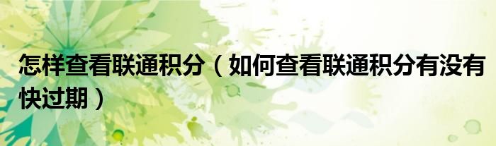 关于怎样查看联通积分,如何查看联通积分有没有快过期的介绍到此结束,希望对大家有所帮助。