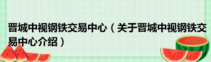 关于晋城中视钢铁交易中心到此分享完毕,希望能帮助到您。