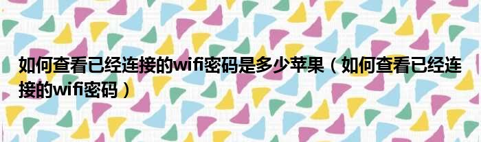 关于如何查看已经连接的wifi密码是多少苹果,如何查看已经连接的wifi密码的介绍到此结束,希望对大家有所帮助。